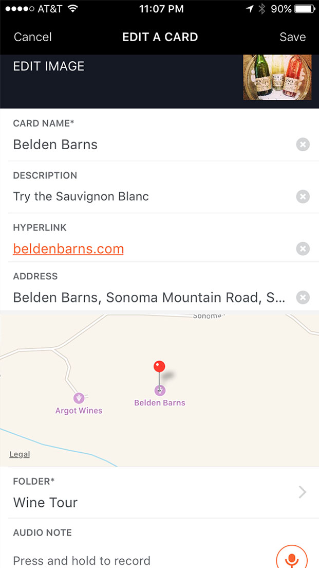 Save a voice note to any card. Voice Notes can give more depth to a subject.